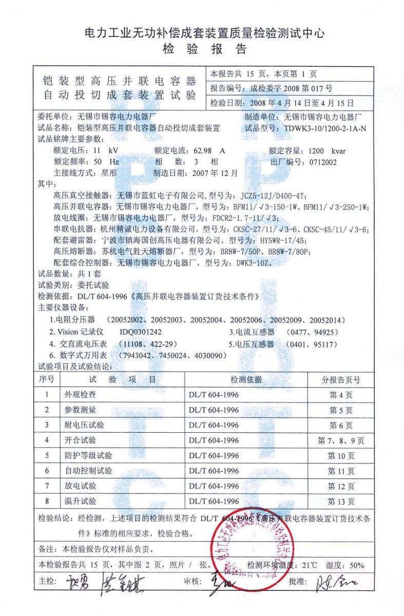 Test report release time:2020-07-20 04:06:13source:Wuxi Xirong Electric Appliance Co., Ltd.Click:1545