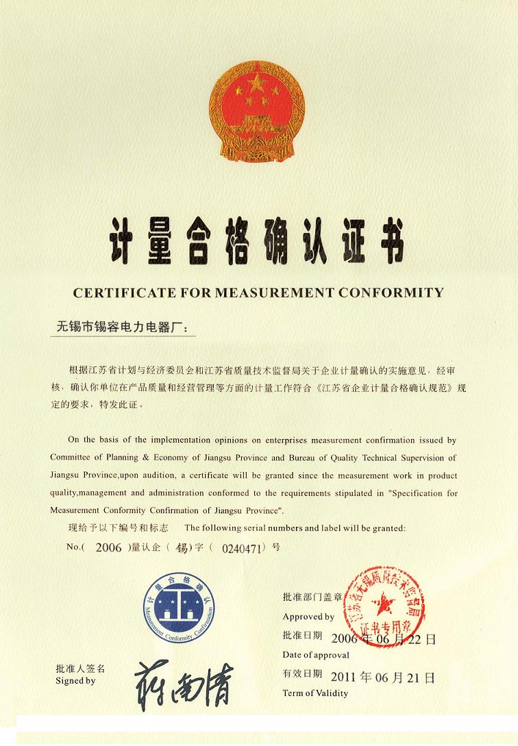 Measurement certificate release time:2020-07-20 04:19:06source:Wuxi Xirong Electric Appliance Co., Ltd.Click:1699