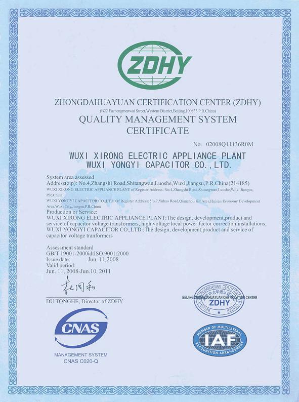 Qualification certificate release time:2020-07-20 04:20:36source:Wuxi Xirong Electric Appliance Co., Ltd.Click:1656
