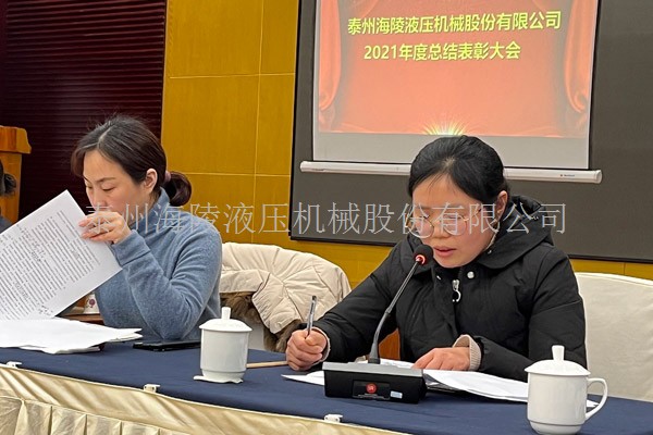董事長丁克芳主持會議并作出重要指示:2021年注定是一個不平凡的一年,全體職工不畏艱難,抗擊疫情;無私奉獻,迎難而上;一步一個腳印為公司的穩(wěn)步發(fā)展做出巨大貢獻。在外部環(huán)境極為艱難的情況下,使公司業(yè)績逐步穩(wěn)定增長,邁上新的臺階!企業(yè)客戶受眾面大幅擴展,得到越來越多的認可,這些都離不開全體職工的辛勤奉獻!在新的一年中海陵液壓將繼續(xù)精益求精,升級技術、優(yōu)化創(chuàng)新產(chǎn)品;加大研發(fā)力度,加大研發(fā)資金投入;加快產(chǎn)品升級、更新?lián)Q代的步伐;堅持科學發(fā)展,注重安全生產(chǎn);提高職工的福利待遇,提升職工技能素養(yǎng)!在往后的工作中,不斷提升企業(yè)品牌、為客戶創(chuàng)造價值。這也是全體海陵人的不懈追求!
