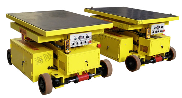 設(shè)備組成為液壓泵站驅(qū)動的升降平臺,升降平臺上工作臺面可實現(xiàn)前應(yīng)移動及旋轉(zhuǎn),整個平臺可實現(xiàn)縱橫向的行走,由電機驅(qū)動實現(xiàn)行走功能,可以自由運行,即能夠?qū)崿F(xiàn)縱向、橫向。